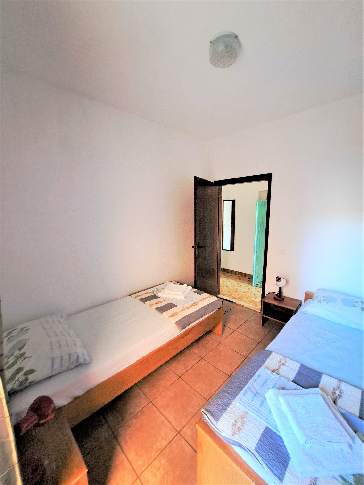 Located on the ground floor, this apartment is ideal for 4 people, sporting 2 bedrooms, one with a double bed, and one with two single beds.