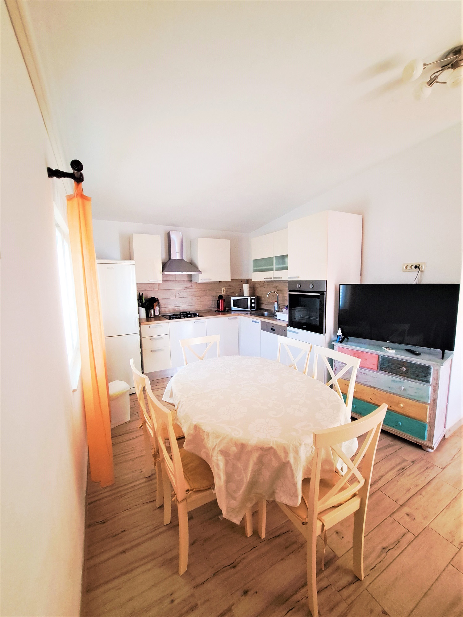 Also, in the living room, you can find a SAT-TV together with the access information for the Wi-Fi.