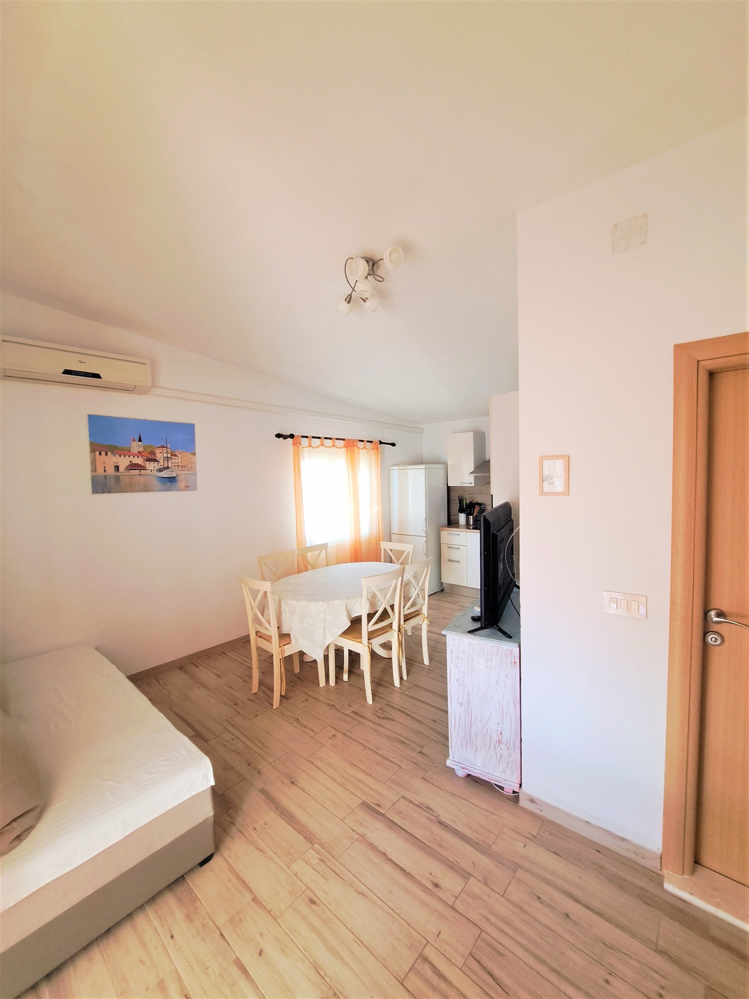 The apartment has one A/C unit, located in the living room, for when you want to relax indoors for lunch.